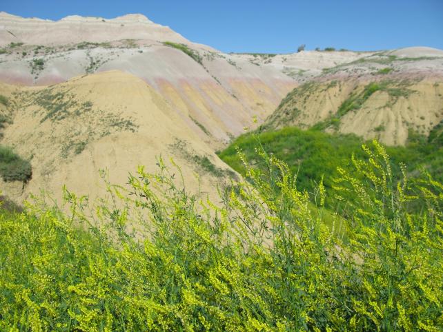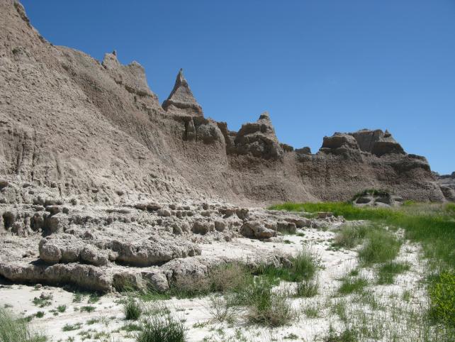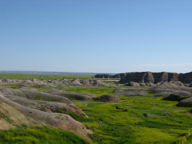 The next day, we wound through the back roads into the Badlands National Park. It was hot. Very, very hot. Bring water, bring sunscreen, bring your camera because it’s beautiful. Hopefully, we captured the vastness of the landscape, but you’ll still want to see it for yourself. Our final surprise in the Badlands was a herd of Big Horn Sheep climbing up a mountain, grazing in a field and standing on the horizon. Yes, we were surrounded. It was a joy to see them leap about…